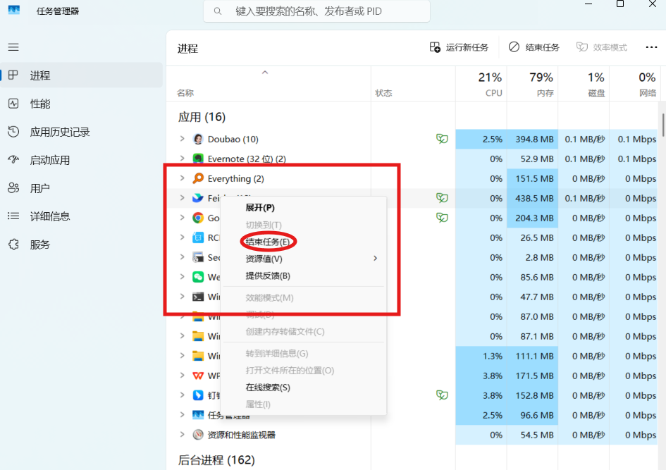 1.打开任务管理器(Ctrl+Shift+Esc)