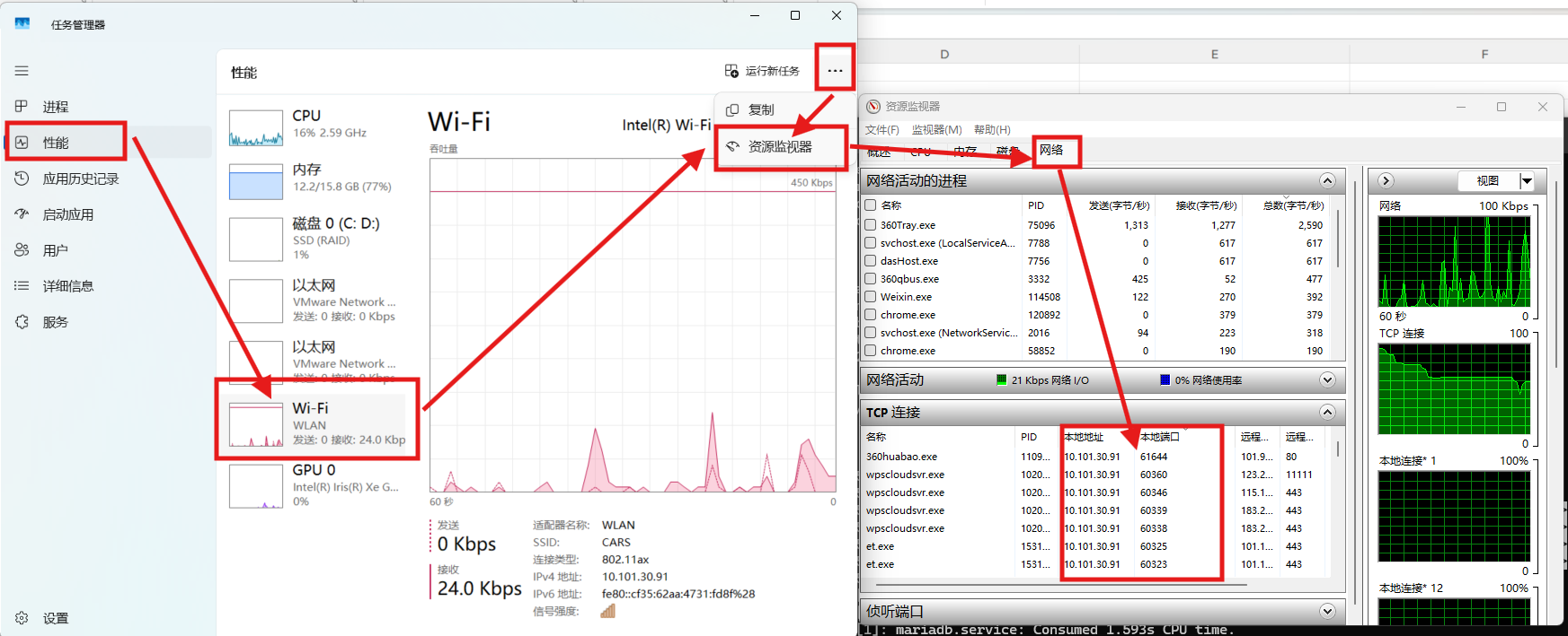 3. 点击底部的 "打开资源监视器"